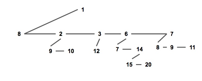 需要注意的是,一个节点的儿子链表是按插入时间排序的,即最右边的节点最早成为父节点的儿子,最左边的节点最近成为父节点的儿子.