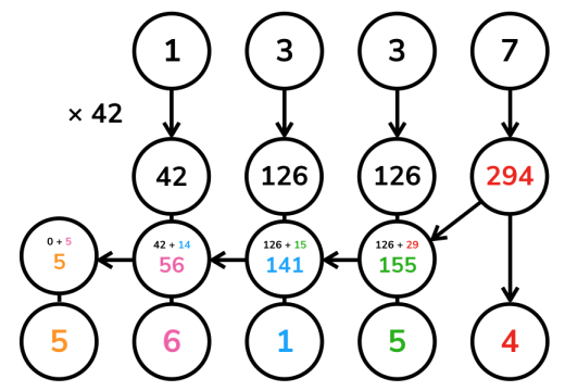 也就是从最低位开始,将两个加数对应位置上的数码相加,并判断是否达到或超过 1 0 10 .如果达到,那么处理进位:将更高一位的结果上增加 1 1 ,当前位的结果减少 1 0 10 .