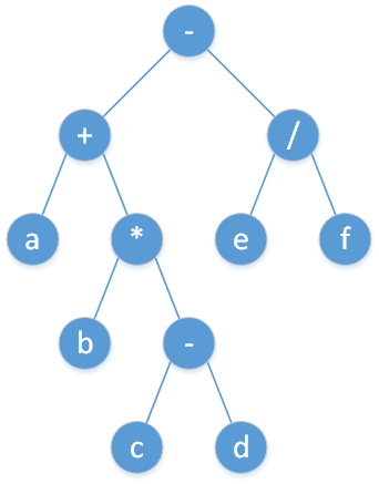 一种递归分析表达式的方法是,将表达式当成普通的语法规则进行分析,分析后拆分成如图所示的表达式树,然后在树结构上自底向上进行运算.