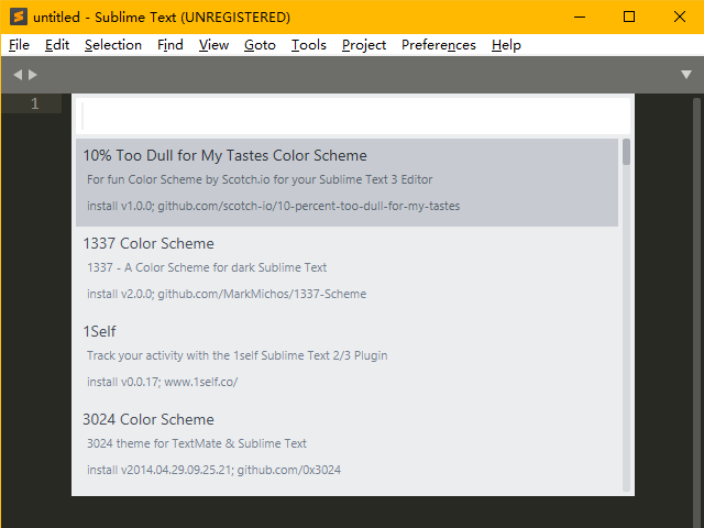 再次按下Ctrl+Shift+P输入 Install 后回车(完整命令是 Package Contrl:Install Package),等待加载完成,接下来应该是这个界面: